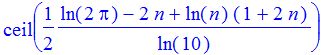 Factorial digits are the number of decimal digits of n!. The Kamenetsky formula is valid for 1 < n < 6561101970383.